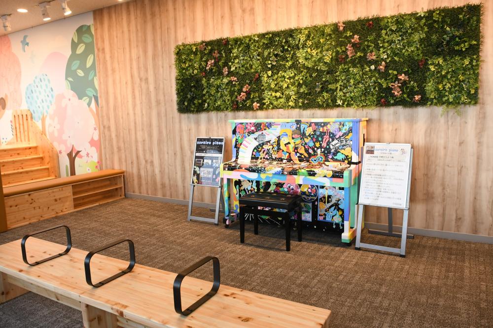 自然を感じる落ち着いた空間でストリートピアノ「sorairo piano(そらいろピアノ)」を演奏することができます。