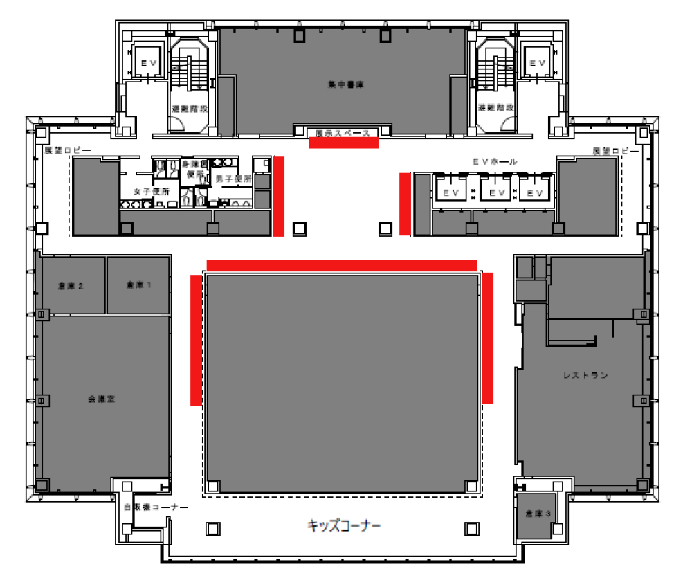 詳しくは「22階フロア図面(展示可能エリア)」のとおりです。