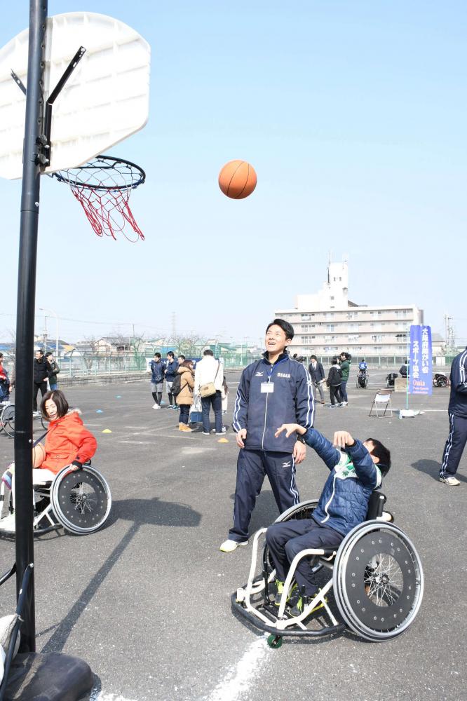 大阪府障がい者スポーツ協会のご協力で、日常車いすの基本操作のほか、バスケットボール、ボッチャ等のスポーツ体験会を実施しました。