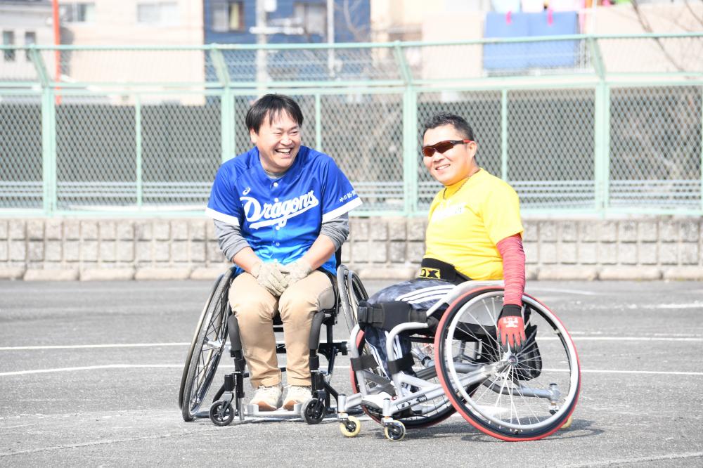 また、オープニングセレモニーでは車椅子ソフトボールのデモンストレーションも行われ、野田市長もバッティングと1塁への走塁を体験されました。