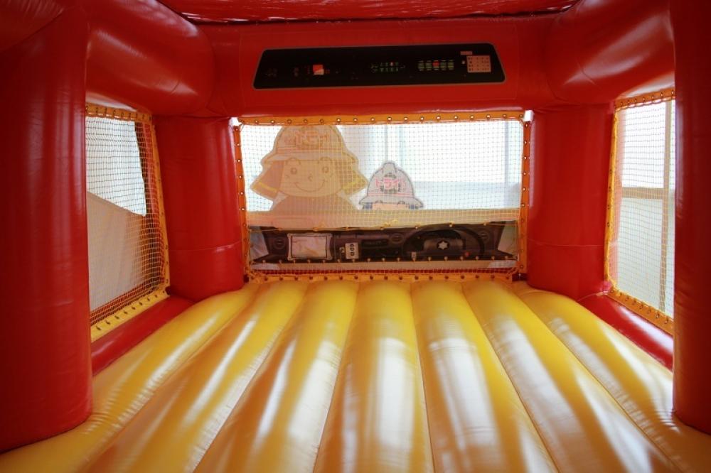 消防局防災学習センターでは、消防車型のトランポリンを用意しました。