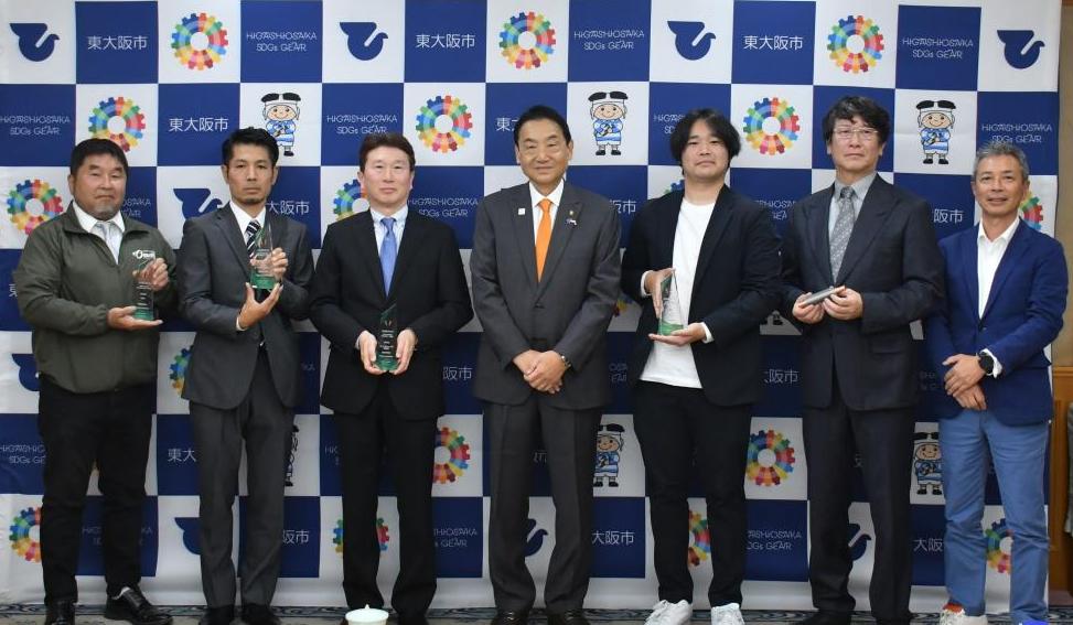 東大阪ブランド認定に伴い、令和7年10月24日に認定式を実施し、野田義和市長より、認定証とトロフィーが授与されました。認定された企業様におかれましては、ブランド認定マークを使った製品の販売を通じて東大阪市のモノづくりをPRしていただき、市とともに東大阪製品の魅力を世界へ届け、市のモノづくりを盛り上げていきます。