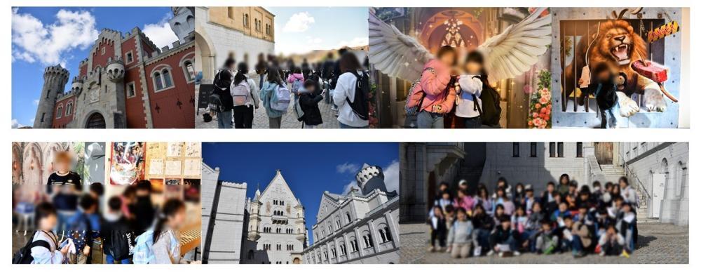 姫路のテーマパーク「太陽公園」に行きました。中世ヨーロッパのようなお城を見て、子どもたちからは「わーっ」と歓声があがっていました。お城の中には「視覚トリック3Dアート」があり、面白い写真がたくさんとれました。