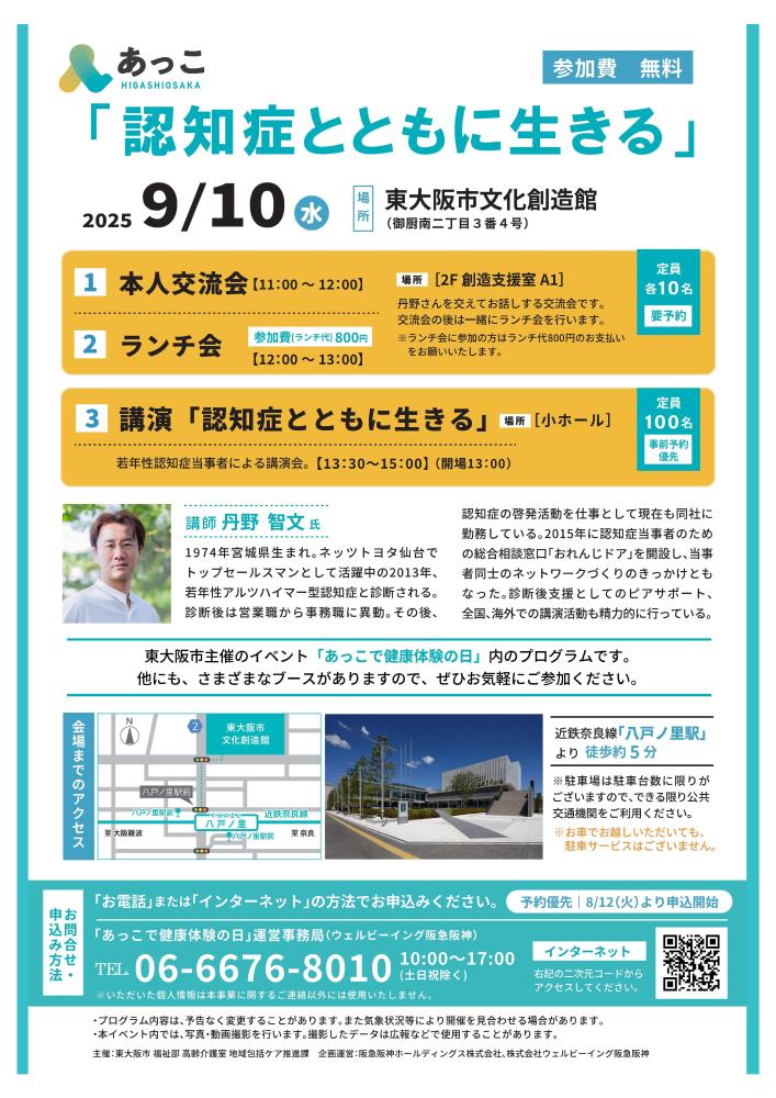 若年性認知症当事者による講演会。11時から本人交流会とランチ会を開催!詳しくは申込フォーム(別ウインドウで開く)をご覧ください。