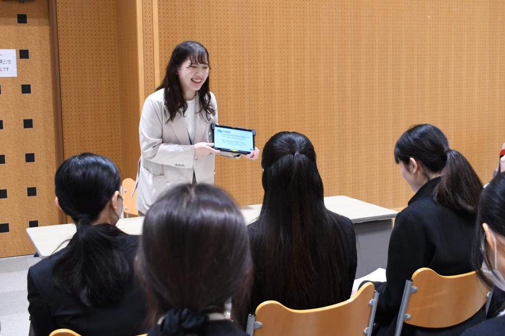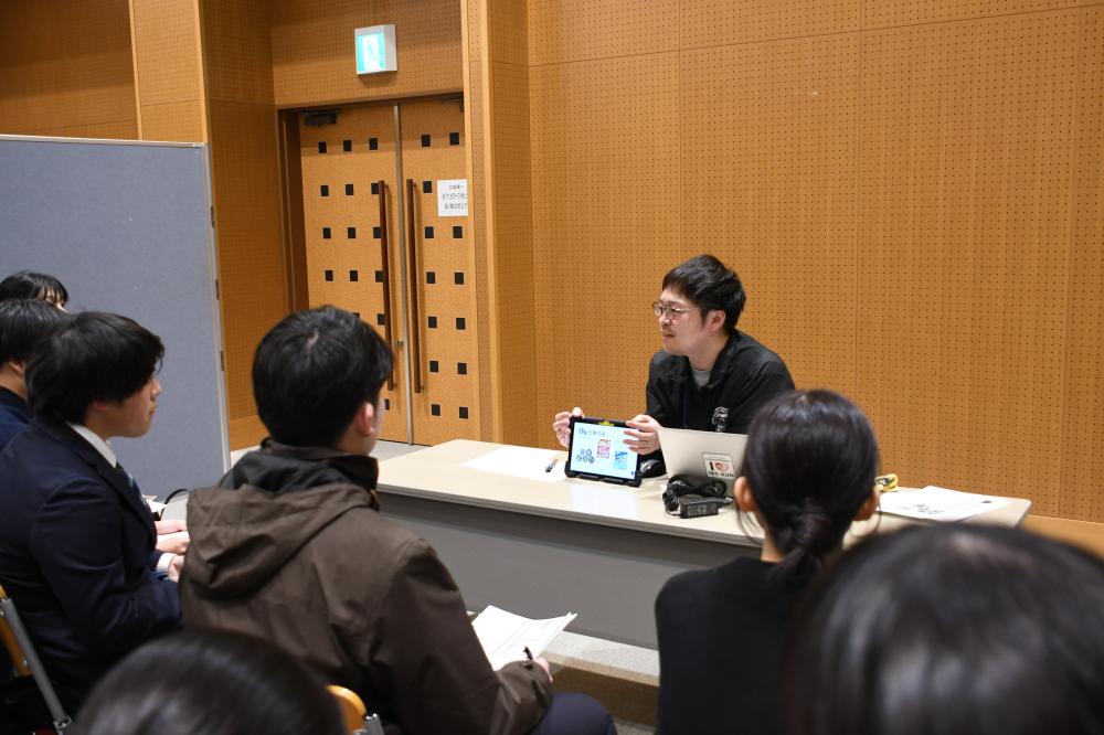 人事課職員が東大阪市の概要や、市役所の仕事、勤務条件、採用試験についてお話ししました。