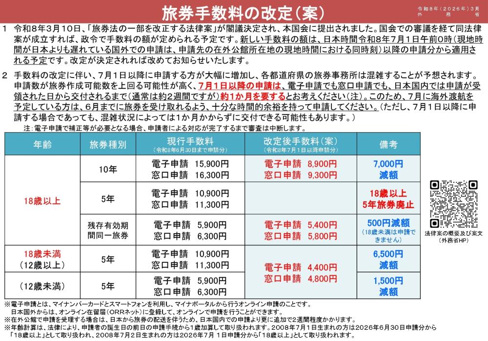 旅券手数料の引下げに向けた調整について、外務省より発表がありました。