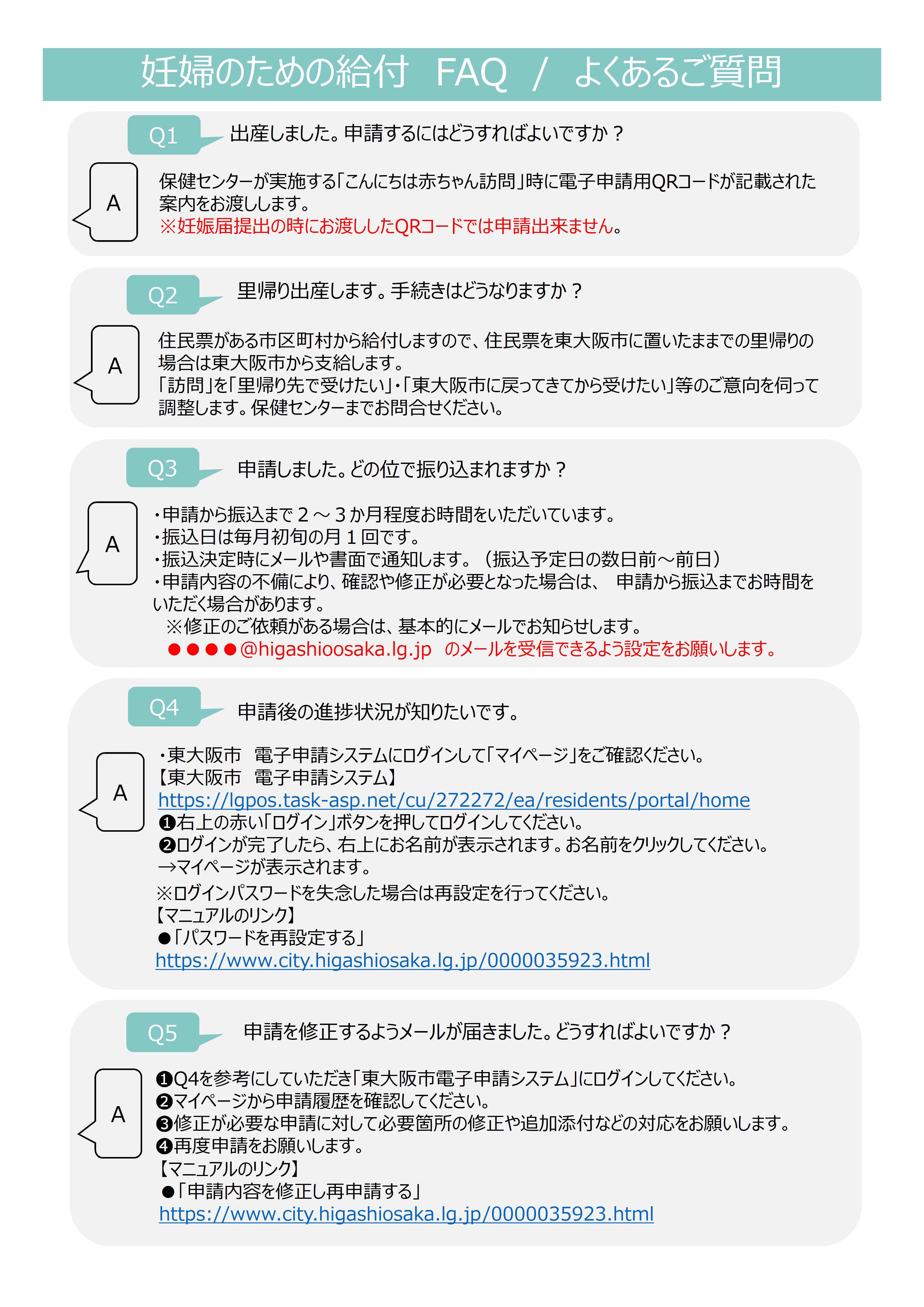 備考:産科医療機関等を受診し、妊娠の事実を確認されている方が支給対象です。妊娠届出の時点で産科医療機関等を受診されていない場合は、受診により妊娠の事実を確認されてからご案内いたします。やむをえない事情により、産科医療機関等を受診できない方ははぐくーむ(保健センター)へご相談ください。