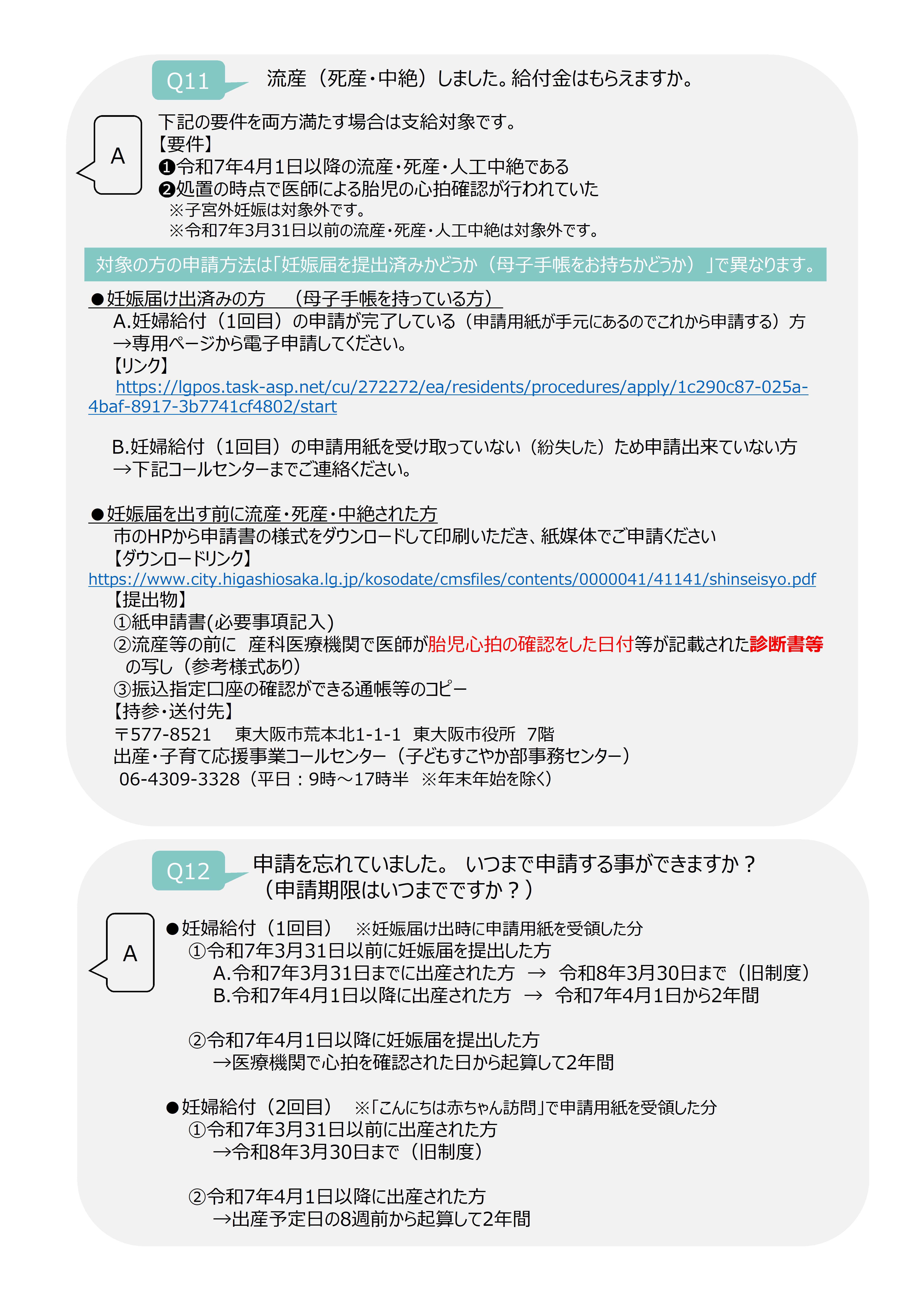 備考:令和7年4月1日以降に流産等をされた場合は、産科医療機関において胎児の心拍が確認できていれば、給付対象になります。(令和7年3月31日以前に流産等をされた場合は、給付対象になりません。)
