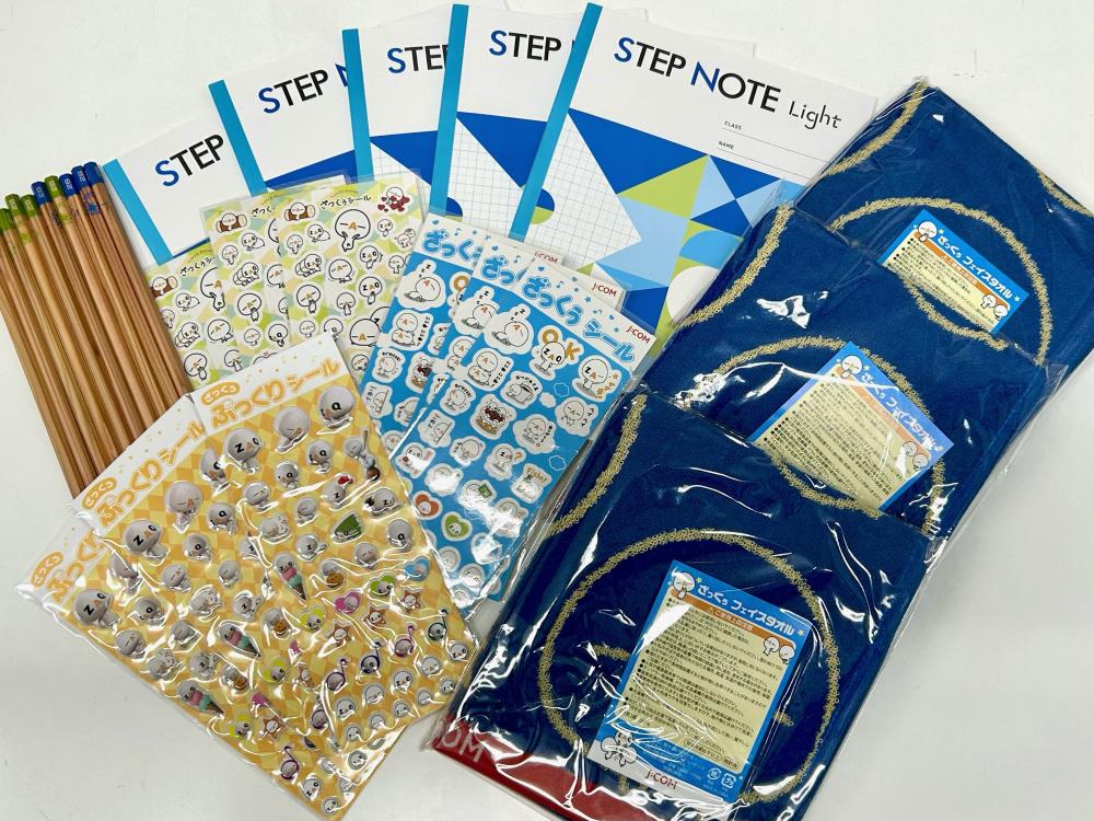 地域貢献の一環として、株式会社セブン‐イレブン・ジャパン、株式会社ジェイコムウエスト東大阪局、タツタ電線株式会社、第一生命保険株式会社よりノートや鉛筆、シール、タオル等を寄付していただきました。寄付していただいた商品は、市内の小学生を対象としたイベントで参加者に配布しました。
